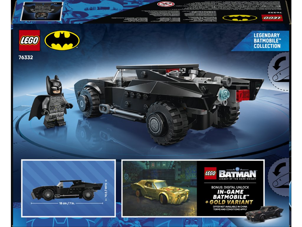 - MINIFIGÚRKA BATMANA – Nechýba minifigúrka LEGO® superhrdinu s látkovým plášťom a ani pamätná zlatá minca zabudovaná do modelu Batmobilu, ktorá sa skrýva pod odnímateľnou kapotou