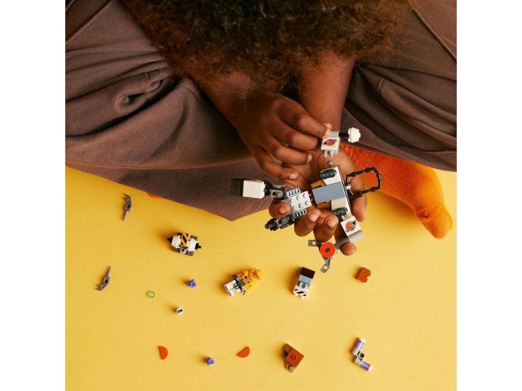 Hračkárske vesmírne sety LEGO City obsahujú realistické vozidlá, prepracované modely a inšpiratívne postavy, ktoré spájajú predstavivosť so skutočnosťou pre nápadité hry bez obmedzení. Deti môžu skombinovať túto zábavnú vesmírnu stavebnicu s ďalšími vesmírnymi modelmi zo série LEGO City (predávané samostatne) pre ešte väčšie dobrodružstvá na obežnej dráhe.