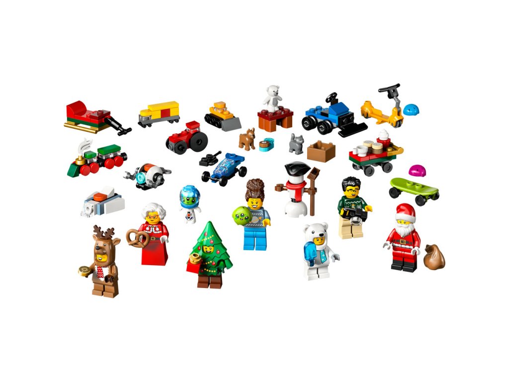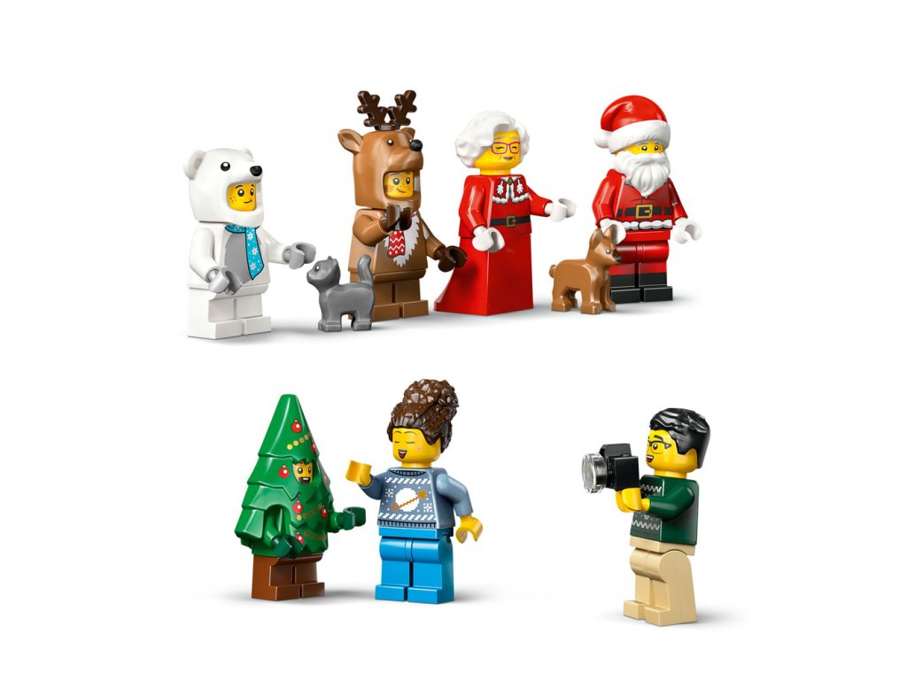 - Darčeková stavebnica s adventným kalendárom a 24 prekvapeniami – Súčasťou sú minifigúrky Santu a pani Clausovej, postavy v kostýmoch ľadového medveďa, soba a vianočného stromčeka, miniatúrne modely a zábavné doplnky