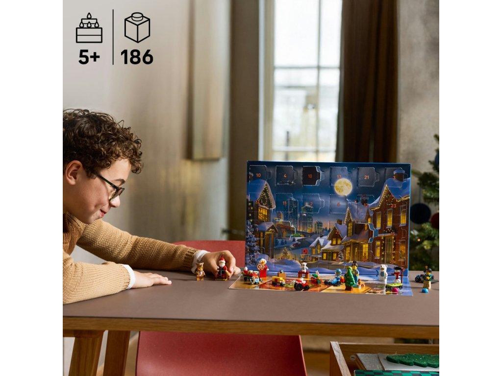 - Vianočný adventný kalendár plný zábavy – Dodajte obdobiu sviatkov extra čaro s týmto LEGO® City Adventným kalendárom 2025 pre deti od 5 rokov