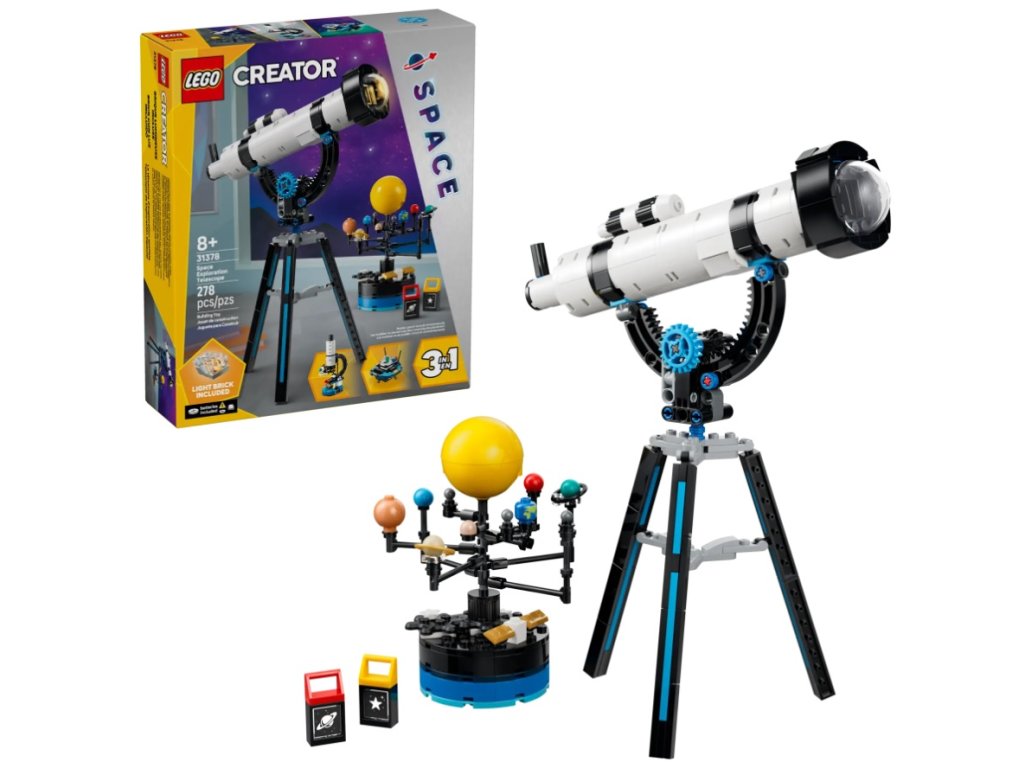 - HRAČKA STEM 3 V 1 – So stavebnicou LEGO® Creator 3 v 1 Teleskop na prieskum vesmíru (31378) si chlapci a dievčatá od 8 rokov môžu postaviť a prestavať 3 rôzne vesmírne a vedecké hračky z jedného balenia kociek