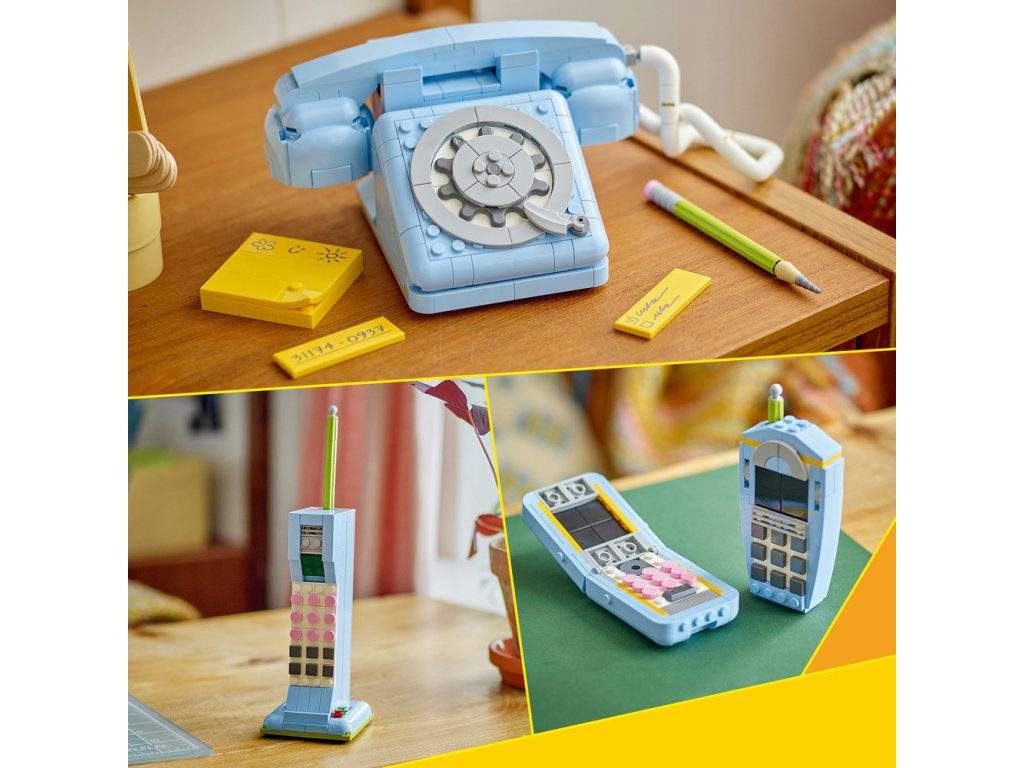 - 3 modely retro telefónov LEGO® z 1 balenia kociek – S týmto modelom LEGO® Creator Retro telefón 3 v 1 si deti od 8 rokov môžu postaviť a prestavovať 3 rôzne retro modely z jedného balenia kociek