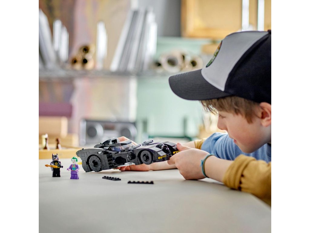 - Minifigúrky a ešte viac – Okrem zostaviteľného Batmobilu v štýle z roku 1989 stavebnica obsahuje minifigúrky Batmana a Jokera a doplnky vrátane Batarangu, hrotu harpúny a pút