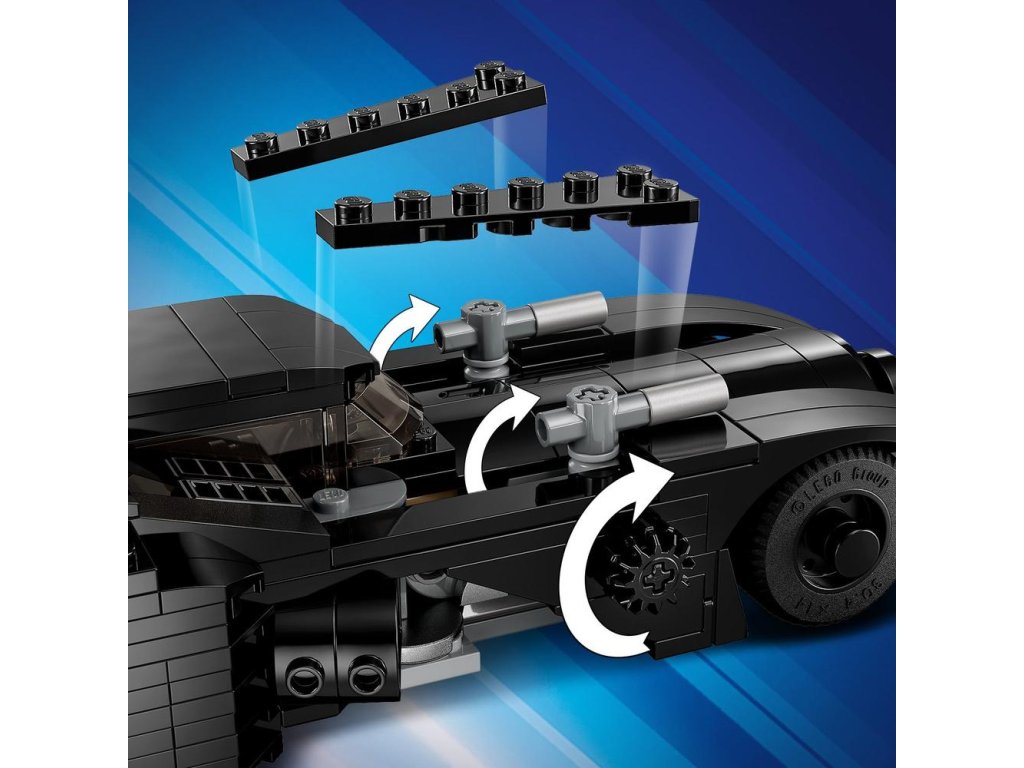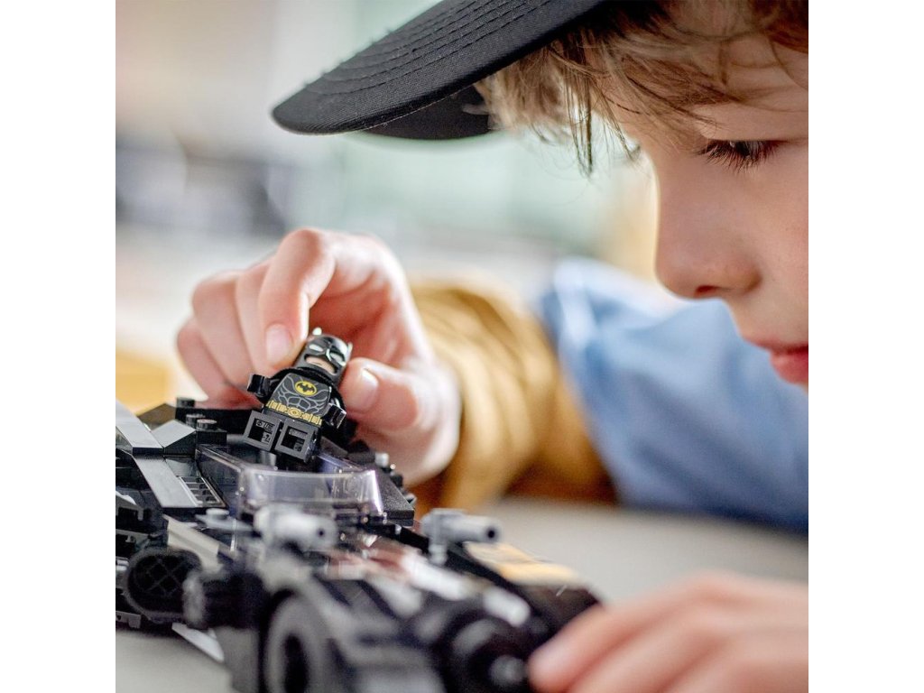 - Stavajte, hrajte a vystavte – Batmobil meria vyše 5 cm na výšku, 28 cm na dĺžku a 9 cm na šírku a ľahko ho možno skombinovať s inými stavebnicami zo série LEGO® DC Batman™