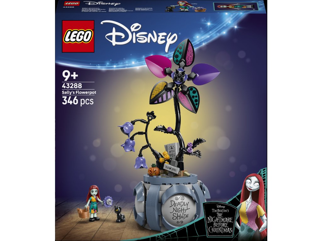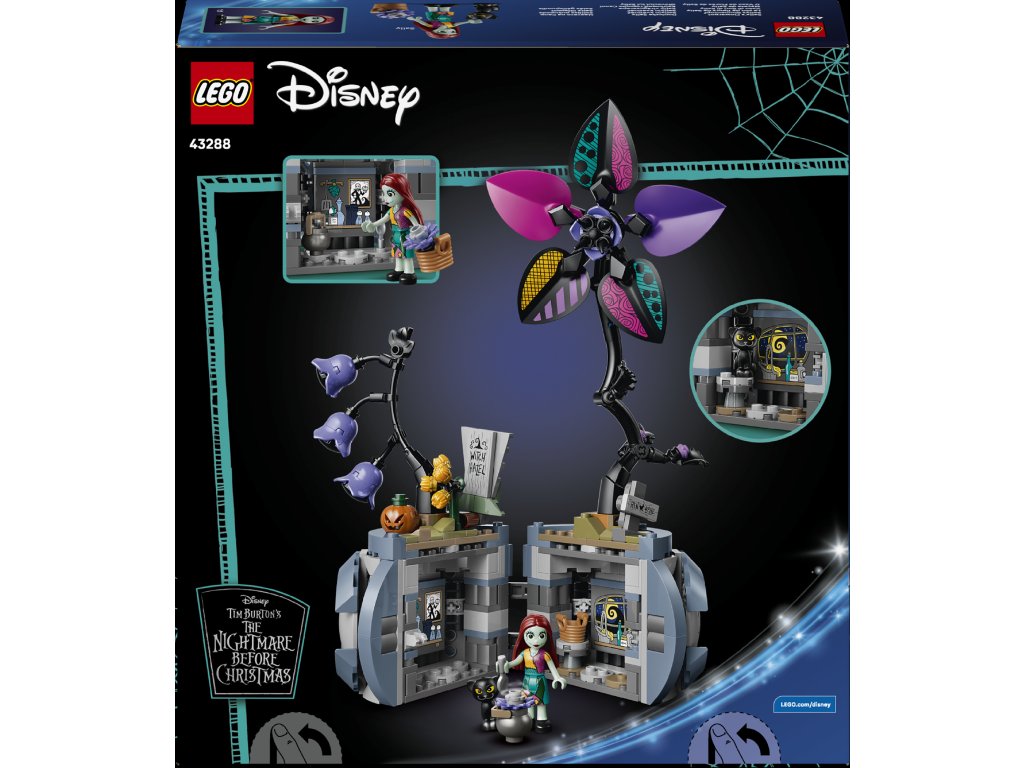- POSTAVIČKY A PRVKY – Stavebnica s figúrkami LEGO ǀ Disney Sally a malou čiernou mačkou prináša okrem nich aj kvet s 3 okvetnými lístkami (z 5), ktoré pasujú k oblečeniu Sally, a 3 nálepky