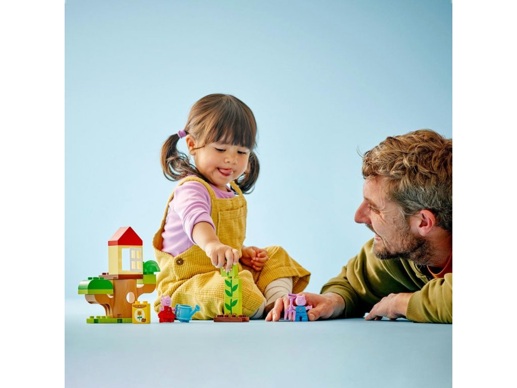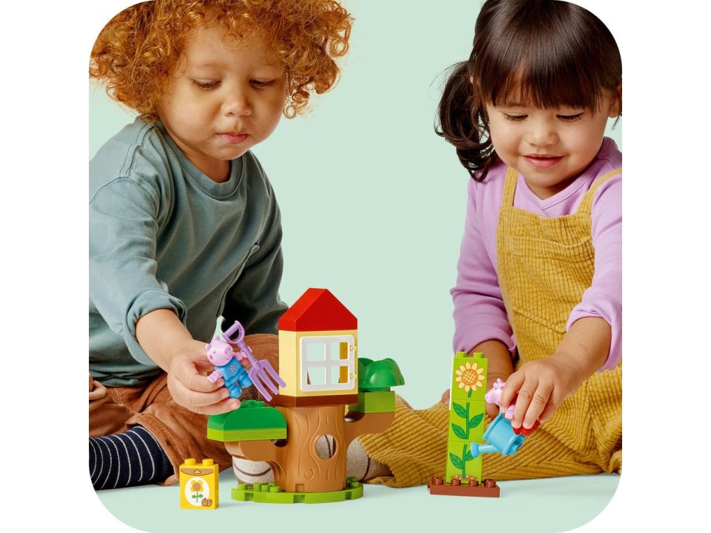Táto vzdelávacia hračka LEGO DUPLO Prasiatko Peppa pre deti od 2 rokov im pomáha rozvíjať množstvo zručností, od riešenia problémov a vytrvalosti pri pestovaní rastliny až po starostlivosť o prírodu a sebavyjadrenie, keď sa zahrajú na Peppu a Georgea, ktorí pracujú spoločne a hrajú sa v záhrade.