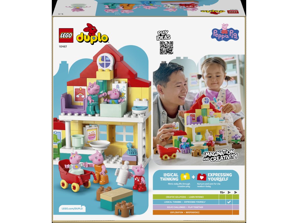 - DARČEK PRE BATOĽATÁ – Stavebnica LEGO® DUPLO® s množstvom prvkov na rozprávanie príbehov nadchne ako zábavný darček pre fanúšikov Prasiatka Peppy a deti od 2 rokov, ktoré sarady hrajú na obyčajný deň doma s rodinkou