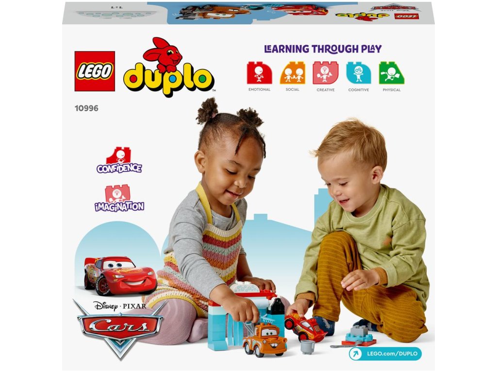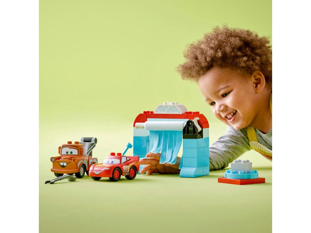 - Zábava v umyvárke LEGO® DUPLO® pre malých staviteľov – Dostaňte deti do sveta rozprávok od štúdií Disney a Pixar so stavebnicou V umyvárke s Bleskovým McQueenom a Materom (10996)