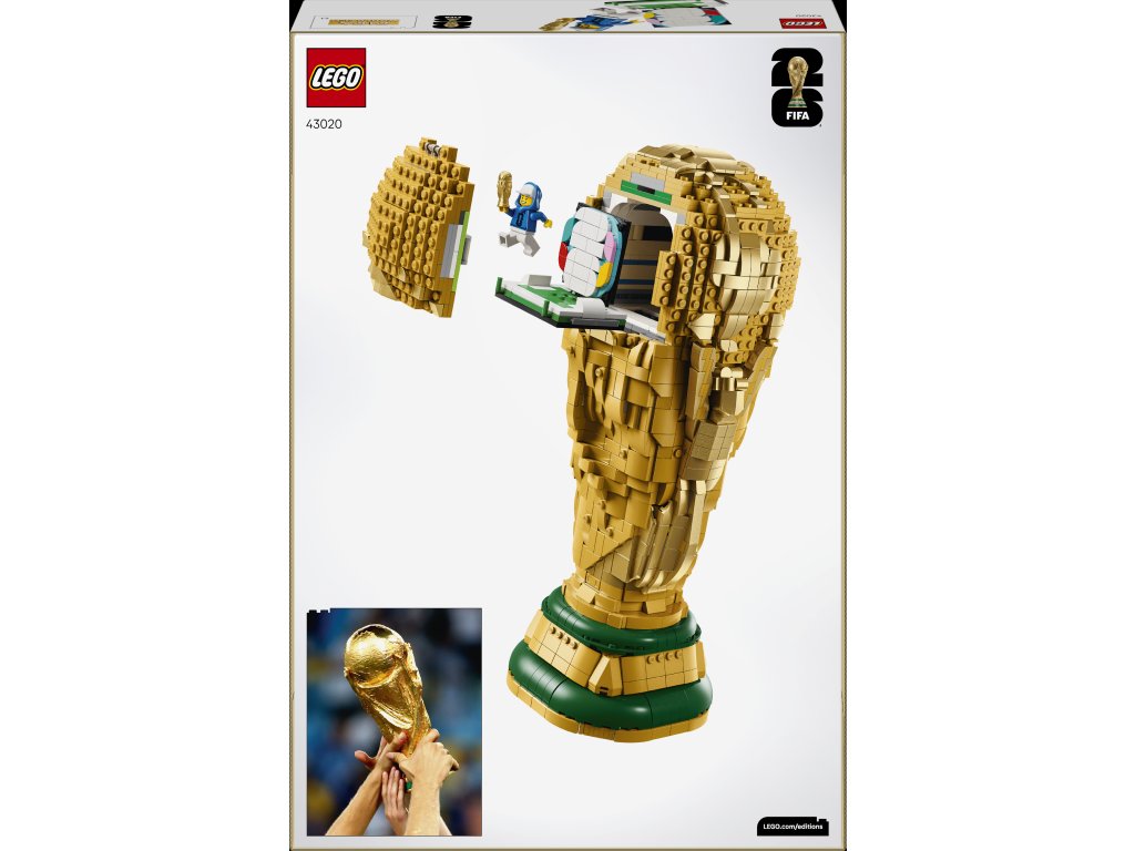 - DEKORATÍVNA FUTBALOVÁ STAVEBNICA – So stavebnicou LEGO® Editions Oficiálna trofej Majstrovstiev sveta vo futbale FIFA (43020) pre futbalových fanúšikov od 12 rokov je každé dieťa víťazom