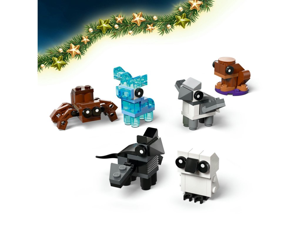 - Ilustrovaný návod – Objavte jednoduchý obrázkový návod na stavanie týchto zábavných modelov na zadnej strane každých dvierok adventného kalendára a v aplikácii LEGO® Builder