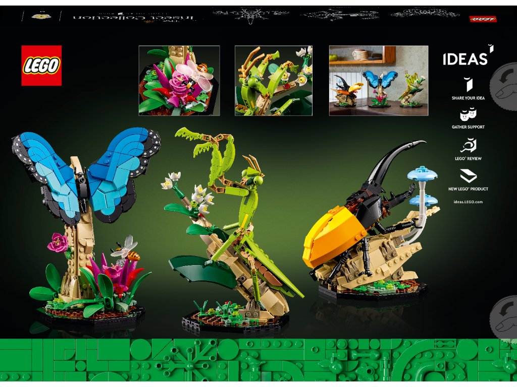 - LEGO® Ideas Zbierka hmyzu (21342) – Prejavte svoju lásku k prírode a užite si čas stavbou týchto 3 polohovateľných a výstavných modelov hmyzu v ich prirodzenom biotope v životnej veľkosti
