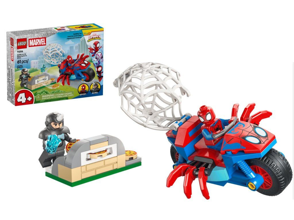 - HRAČKÁRSKA MOTORKA SPIDEYHO – Vyštartujte za superhrdinskou zábavou so stavebnicou LEGO® ǀ Marvel Spidey a jeho fantastickí priatelia Spidey na motorke vs. Rhino (11206), ktorá je určená pre chlapcov, dievčatá a deti od 4 rokov