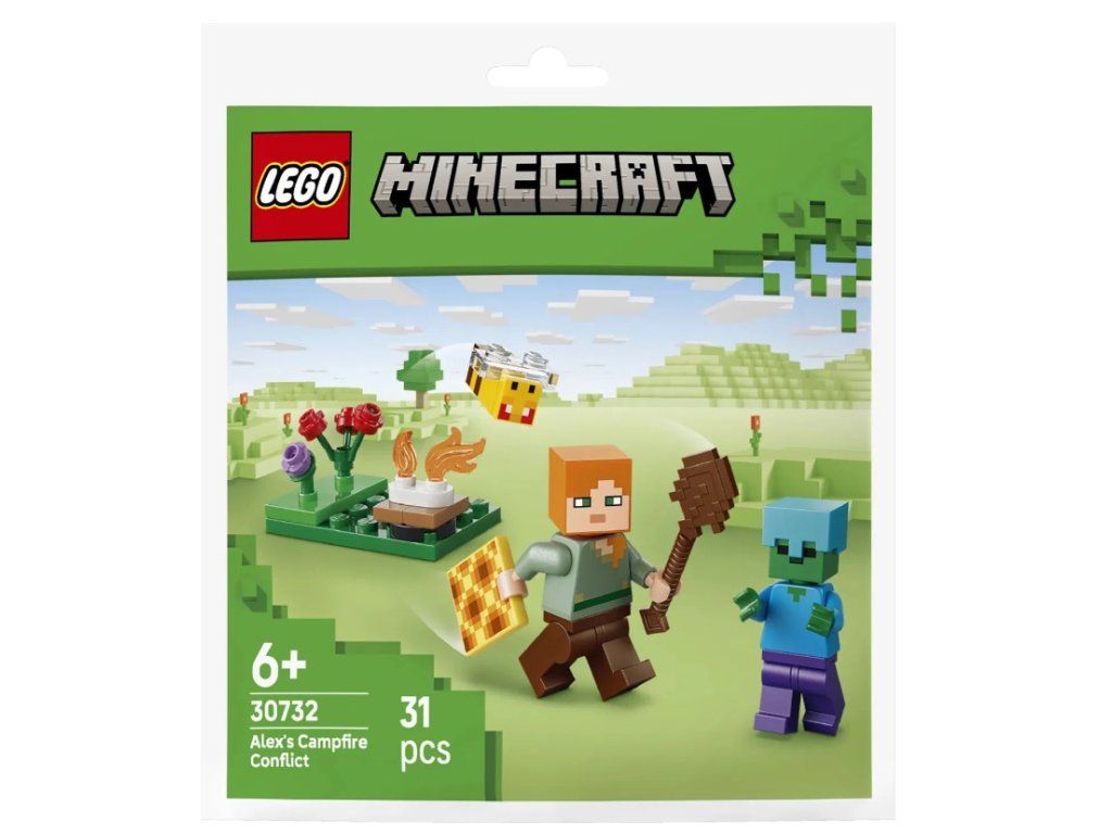 Stavebnica LEGO® Minecraft® 30732 sa inšpirovala počítačovou hrou Minecraft. Deti zavedie na krásne pole, kde si Alex stavia táborák a vsádza pomocou lopaty kvety. Na Alex ale zaútočia nielen nahnevané včely, k útoku sa navyše chystá aj zombie! Stavebnica LEGO® Minecraft® 30732 Alex a konflikt pri táboráku obsahuje 31 dielikov. Vhodná je pre deti od 6 rokov. Rozvíja jemnú motoriku aj predstavivosť detí.