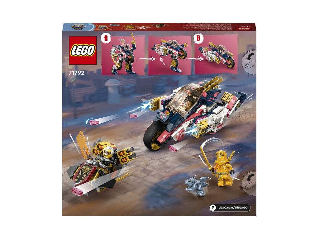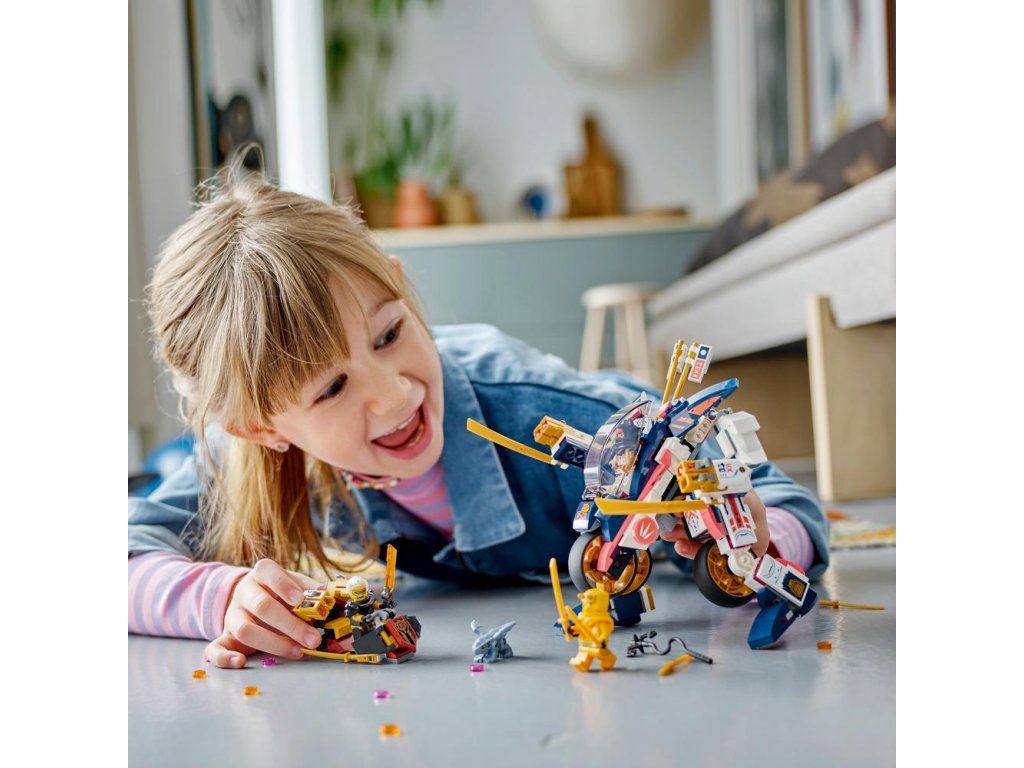 - LEGO® NINJAGO® robotický oblek a motorka – So stavebnicou Sora a jej transformačný motorobot (717892) si deti od 8 rokov môžu zinscenovať svoje obľúbené momenty z televízneho seriálu NINJAGO Dragons Rising