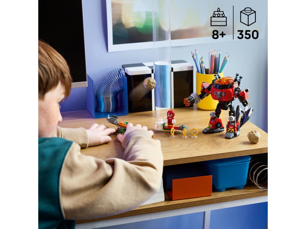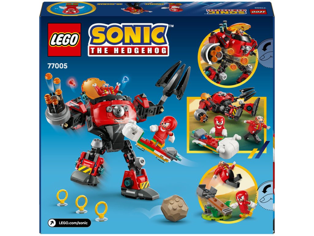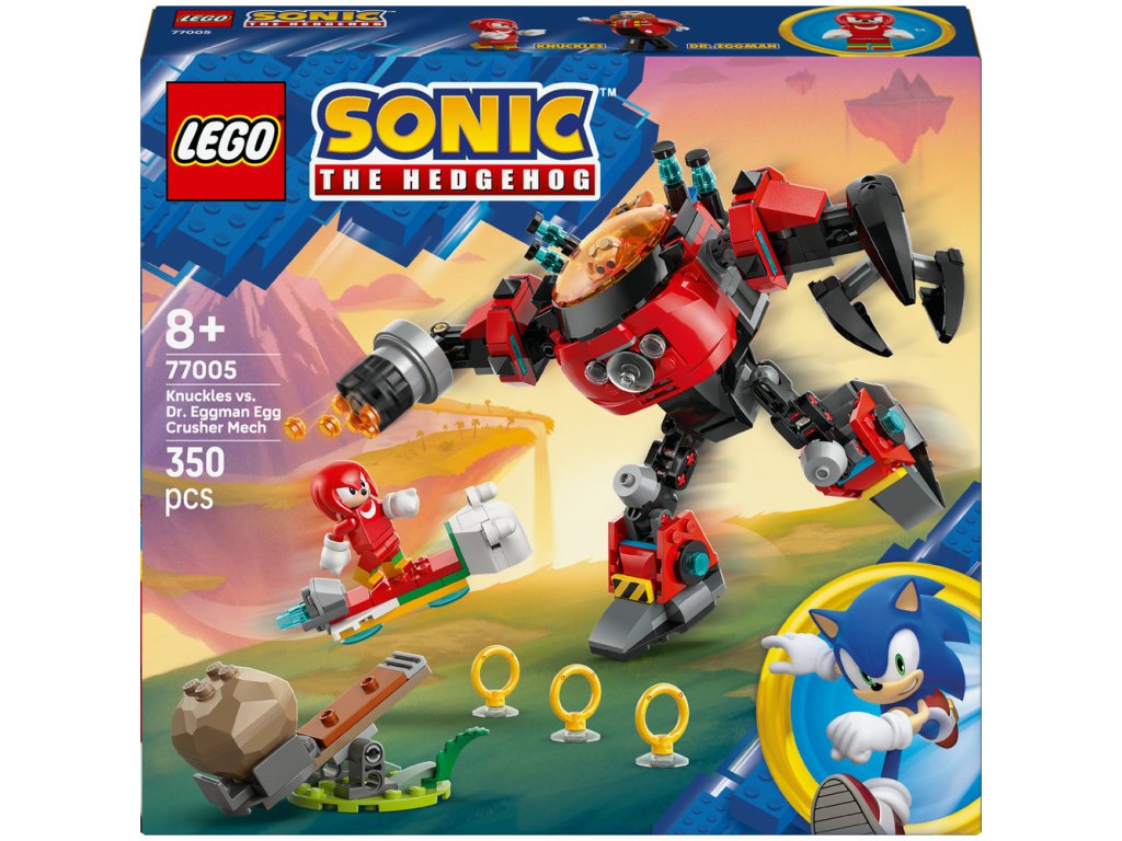 - Zostaviteľný Sonic merch – Doprajte fanúšikom Sonica a deťom od 8 rokov túto stavebnicu Knuckles vs. Dr. Eggman: Robotický oblek Egg Crusher s viacerými hernými možnosťami a 2 ikonickými postavami, ktoré inšpirujú k vymýšľaniu zábavných príbehov