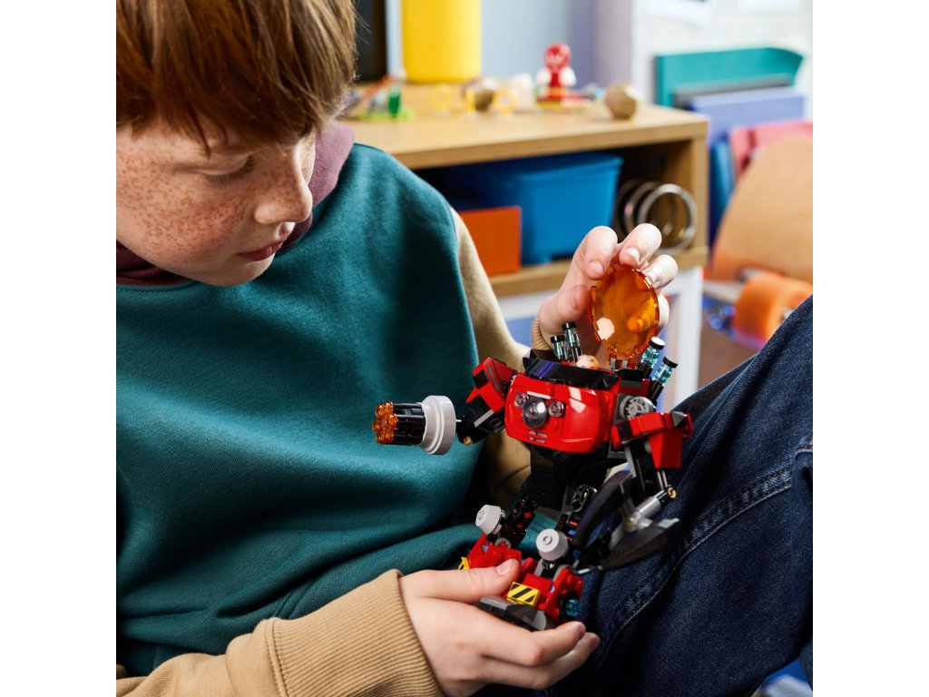 - Robotické dobrodružstvá LEGO® – Táto bojová hračka obsahuje aj katapult s terénom, ktorý odpaľuje balvany stlačením páky, takže fanúšikov Sonica čakajú hodiny akčných hier s Knucklesom a Dr. Eggmanom