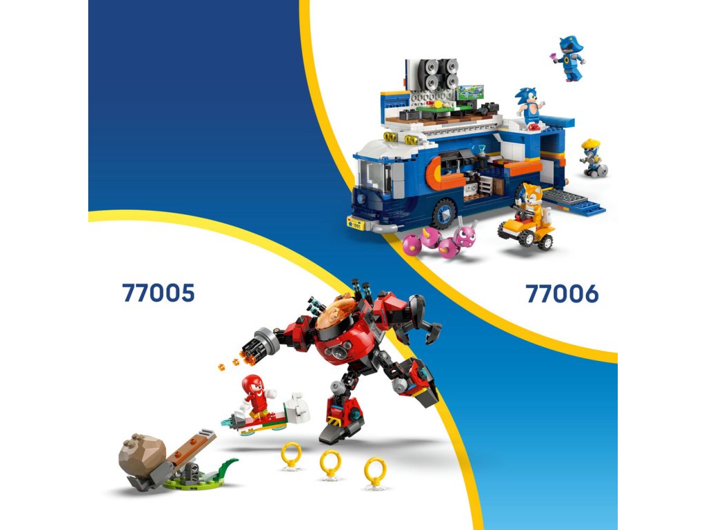 - Hračkársky robotický oblek Dr. Eggmana – Táto stavebnica je ideálna na hry na postavy: zostaviteľného polohovateľného robota, vznášadlo a hračkársky katapult s 2 balvanmi, ako aj postavy Knucklesa a Dr. Eggmana