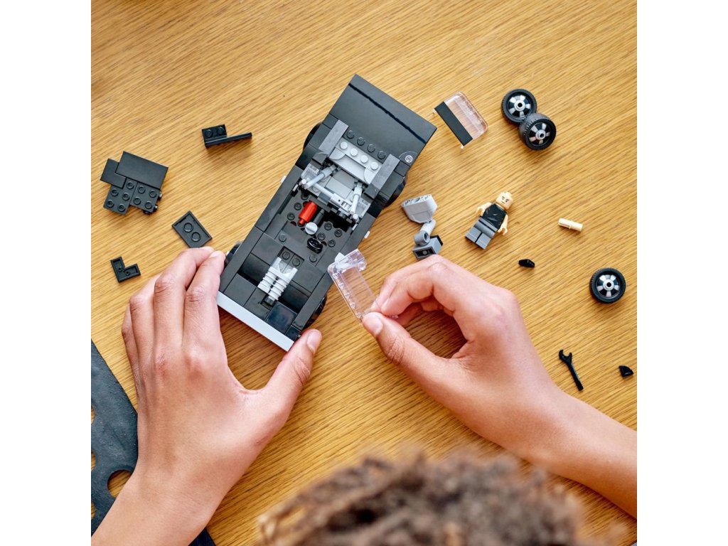 - Čo je v balení? – Všetko, čo potrebujete na postavenie repliky auta 1970 Dodge Charger R/T, ak tomu minifigúrku Dominica Toretta s francúzskym kľúčom