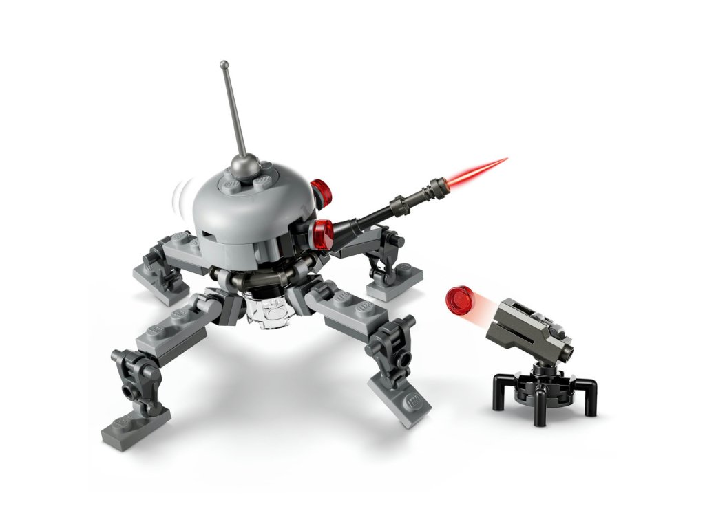 - Ako stvorená na bitky Star Wars™ – Stavebnica obsahuje chodca AT-RT s kokpitom pre minifigúrku LEGO®, vystreľovač projektilov a úložný priestor na blaster a ďalekohľad, polohovateľného Pavúčieho droida a vežu s vystreľovačom projektilov