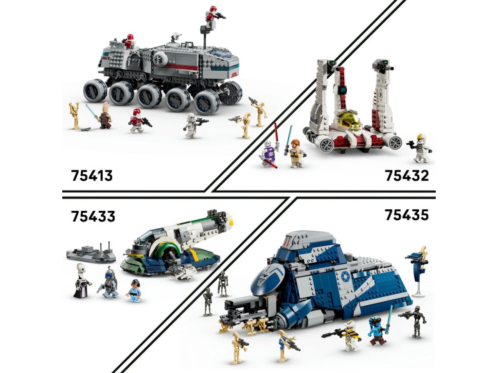 - Objavte celú sériu – Stavebnice LEGO® Star Wars™ (predávané samostatne) umožňujú deťom aj dospelým fanúšikom Star Wars zahrať sa na kultové scény, vymýšľať vlastné príbehy alebo si len vystaviť svoje modely