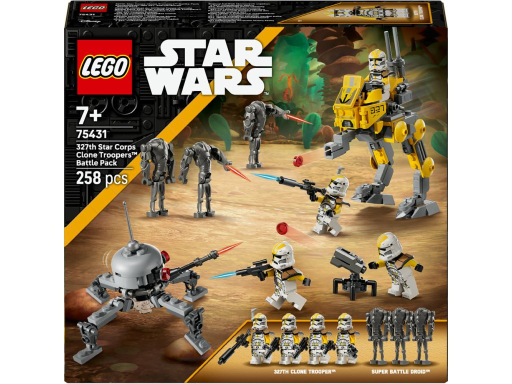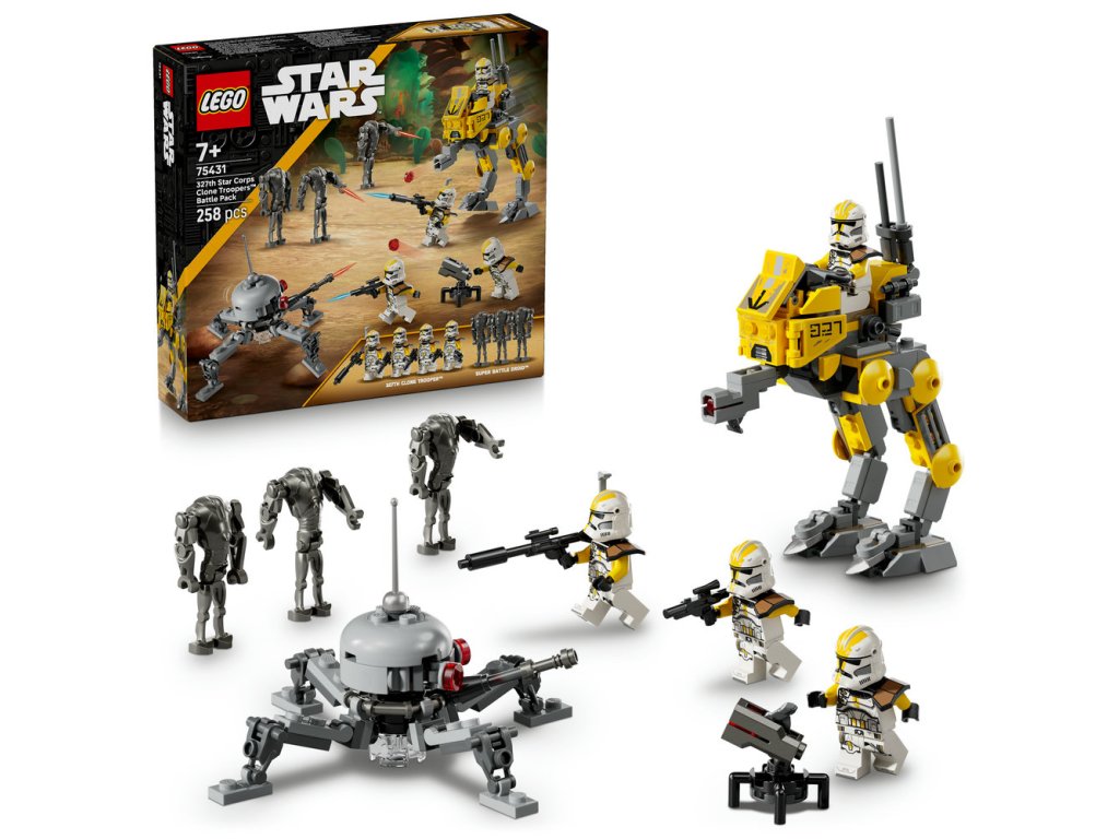 - Bojový balíček LEGO® Star Wars™ – Deti si môžu postaviť vlastnú čatu klonových vojakov z 327. hviezdneho zboru a zahrať sa na epické bitky z filmu Star Wars: Pomsta Sithov proti super Bojovým droidom