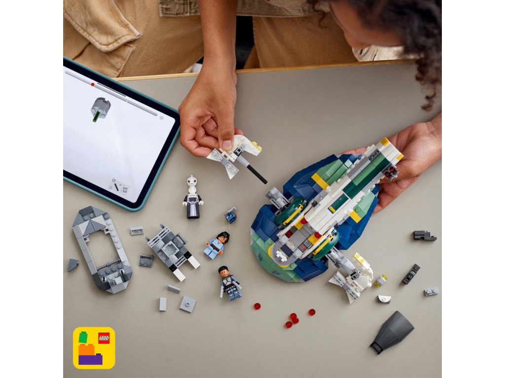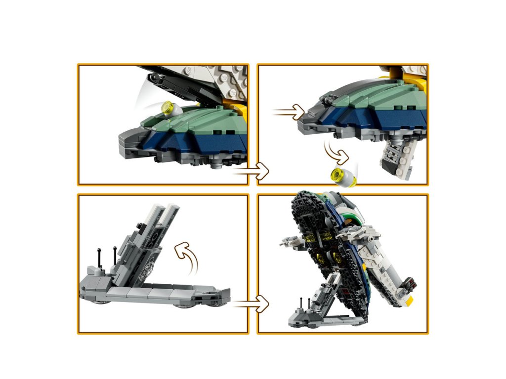 - Hrajte sa a vystavte si túto fantasy dekoráciu – Stavebnica obsahuje aj servisný vozík so sedadlom pre minifigúrku LEGO® a úložný priestor na muníciu; vozík môžete použiť na premiestňovanie hviezdnej lode alebo ako výstavný podstavec