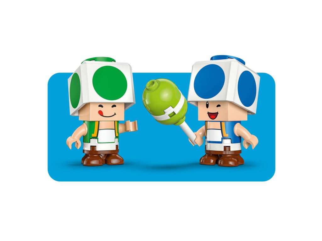 - 2 figúrky LEGO® Super Mario™ na hry na postavy – Táto stavebnica LEGO Nintendo® obsahuje figúrky Blue Toada a Green Toada